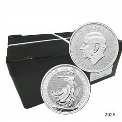 La Monster Box contient 500x 1 once Britannia 2025. A l'intérieur il y a 20 tubes renfermant chacun 25 onces.