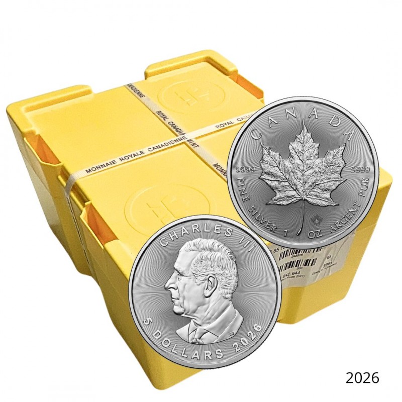 La Monster Box contient 500x 1 once Maple Leaf 2026. A l'intérieur il y a 20 tubes renfermant chacun 25 onces.