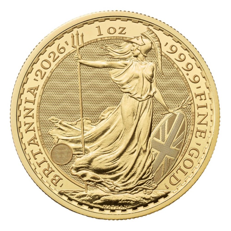 La nouvelle Britannia or 2026 est considérée comme la pièce d'or a plus sécurisé au monde. Elle intègre quatre fonctionnalités avancées pour lutter contre la contre-façon. Frappée à partir d'une once d'or pur 999.9‰, elle a 32.69mm de diamètre pour 2.38mm d'épaisseur et sa valeur nominale est de 100£. Emise annuellement par La Royale Mint depuis 1987, la "Britannia" est le nom en "latin" de la "Grande Bretagne" quand elle était sous l'occupation romaine. Elle tire son nom de l'incarnation féminine de la nation britannique. Comme pour la Britannia argent, la pièce or existe dans plusieurs formats : 1/2, 1/4 et 1/10 d'once et aussi en qualité "Belle Epreuve" ou "BE"